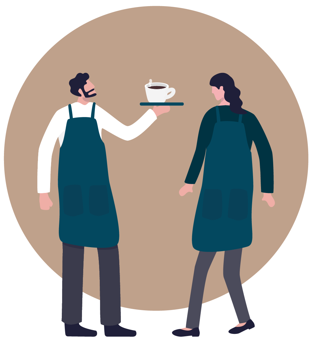 - Poslužuješ goste u opuštenom okruženju koje uglavnom čine djelatnici PEVEX-a i posjetitelji prodajnog centra